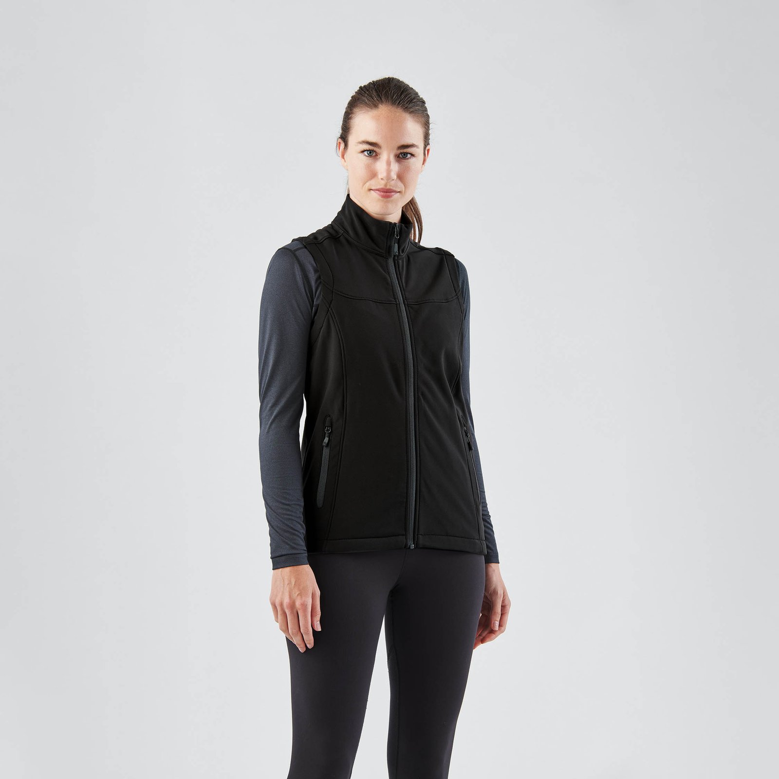 Soft-touch weather-resistant softshell full-zip vest. A high-performance mid layer, featuring water repellent fabric for elemental weather protection. This vest has a lightweight fleece backing to add core warmth and brushed tricot lined pockets to provide added comfort for your hands.