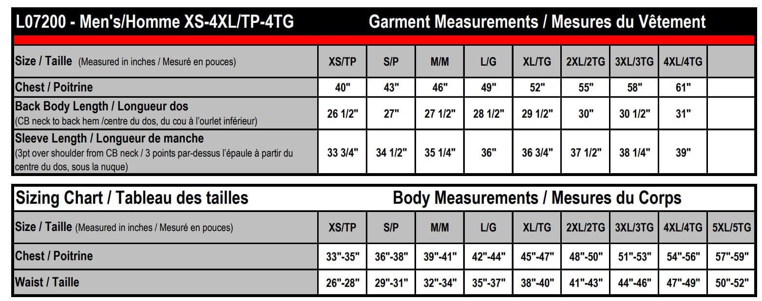 275 gsm – 8.1 oz./yd2 – 13.5 oz./lin. yd 100% polyester oxford with 3000 mm waterproof rating, 3000 gsm breathability rating, wind resistant and water repellent finish. Insulation: 200 gsm body 100% polyester 3M Thinsulate, 170 gsm sleeves 100% polyester. Waterproof zippers on chest and arm with two lower coil zippered pockets, 2 way front zipper, detachable hood, reflective piping, adjustable tab closure on cuffs and inside pockets.